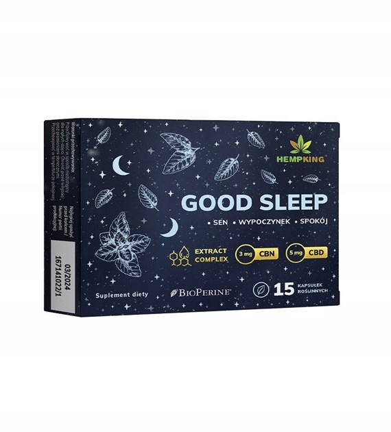 Ziołowe kapsułki na sen z CBD i CBN są przeznaczone dla osób, które mają trudności ze zasypianiem, głębokim snem i budzeniem się oraz innymi problemami związanych z snem. Kapsułka zawiera standardizowane ekstrakty z roślin, które zostały udowodnione, że mają pozytywny wpływ na jakość snu, zasypianie i uspokojenie. Ważne jest również stosowanie odpowiednich nawyków snu, takich jak: odpowiednia dieta i aktywność fizyczna w ciągu dnia, unikanie światła niebieskiego emitowanego przez ekrany oraz korzystanie z technik relaksacyjnych lub medytacji.Kapsułki na sen Good Sleep można kupić bez recepty, podobnie jak inne ziołowe preparaty na sen. To, co wyróżnia Good Sleep od innych produktów tego rodzaju, to fakt, że zawiera skoncentrowane ekstrakty roślinne, których działanie jest wzmocnione ekstraktem z pieprzu czarnego. Standaryzacja i wskaźniki DER potwierdzają wysoką jakość składników, co oznacza, że wszystkie kapsułki mają taką samą ilość aktywnych składników.Opakowanie zawiera 60 kapsułek, które są przechowywane w szklanym słoiczku z aluminiową zakrętką.Good Sleep to nie tylko produkty znanymi kannabinoidami, takimi jak CBD i CBN (5 mg CBD i 3 mg CBN), ale także zawiera melatoninę i GABA (kwas gamma-aminomasłowy).CBD i CBN są składnikami olejków konopnych, ale można je również stosować w postaci kapsułek.
