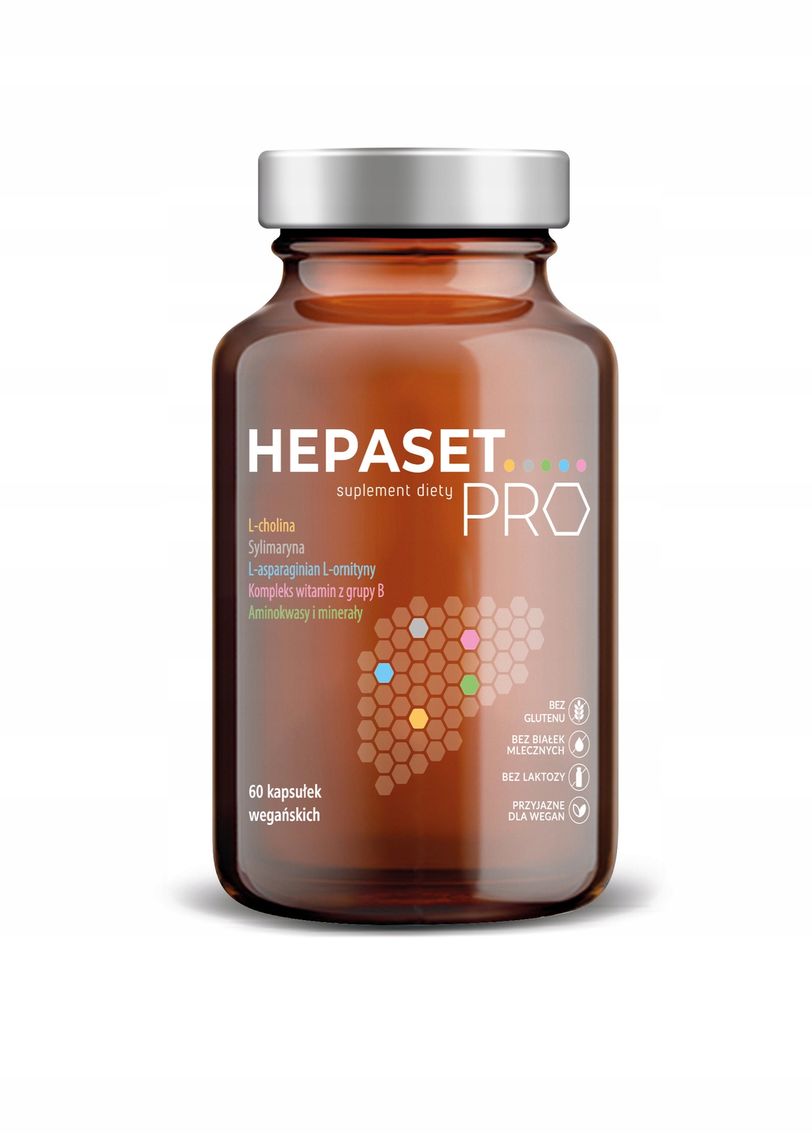 Skład Hepaset PRO został opracowany przez multidyscyplinarny zespół specjalistów i dietetyków woparciu o uznane dane naukowe. Hepaset PRO ma czysty skład, jest produktem bezglutenowym,odpowiednim dla wegan, nie zawiera białek mlecznych i laktozy. Produkt charakteryzuje minimalnyudział dodatków do żywności.Hepaset PRO zawiera kompleks aż czternastu ważnych składników, w które warto uzupełniać dietęw przypadku 1,2 :- stosowania codziennej terapii hormonalnej np. przyjmowania hormonów tarczycy,- długotrwałego przyjmowania preparatów obciążających wątrobę,- stosowania antykoncepcji hormonalnej,- stosowania hormonalnej terapii zastępczej,- stosowania restrykcyjnej diety,- prowadzenia intensywnego trybu życia,- narażenia na stres i szkodliwy wpływ środowiska zewnętrznego.Podstawowym założeniem przy opracowaniu Hepaset PRO był brak kompromisów w kwestiinajwyższej jakości i doboru odpowiednich, aktywnych biologicznie form składników. Składniki: substancja wypełniająca – celuloza mikrokrystaliczna, substancja glazurująca -hydroksypropylometyloceluloza, dwuwinian L-choliny, L-asparaginian L-ornityny, N‑acetyloL‑cysteina, ekstrakt z nasion ostropestu plamistego (Silybum marianum), mąka z otrąb ryżowych, L-metionina, L-tauryna, amid kwasu nikotynowego (niacyna), L-selenometionina SeleniumSelect®(selen), chlorowodorek pirydoksyny (witamina B6), ryboflawina (witamina B2), chlorowodorektiaminy (tiamina), glukozamina 5MTHF (Quatrefolic®) – foliany, molibdenian sodu (molibden),metylokobalamina (witamina B12).