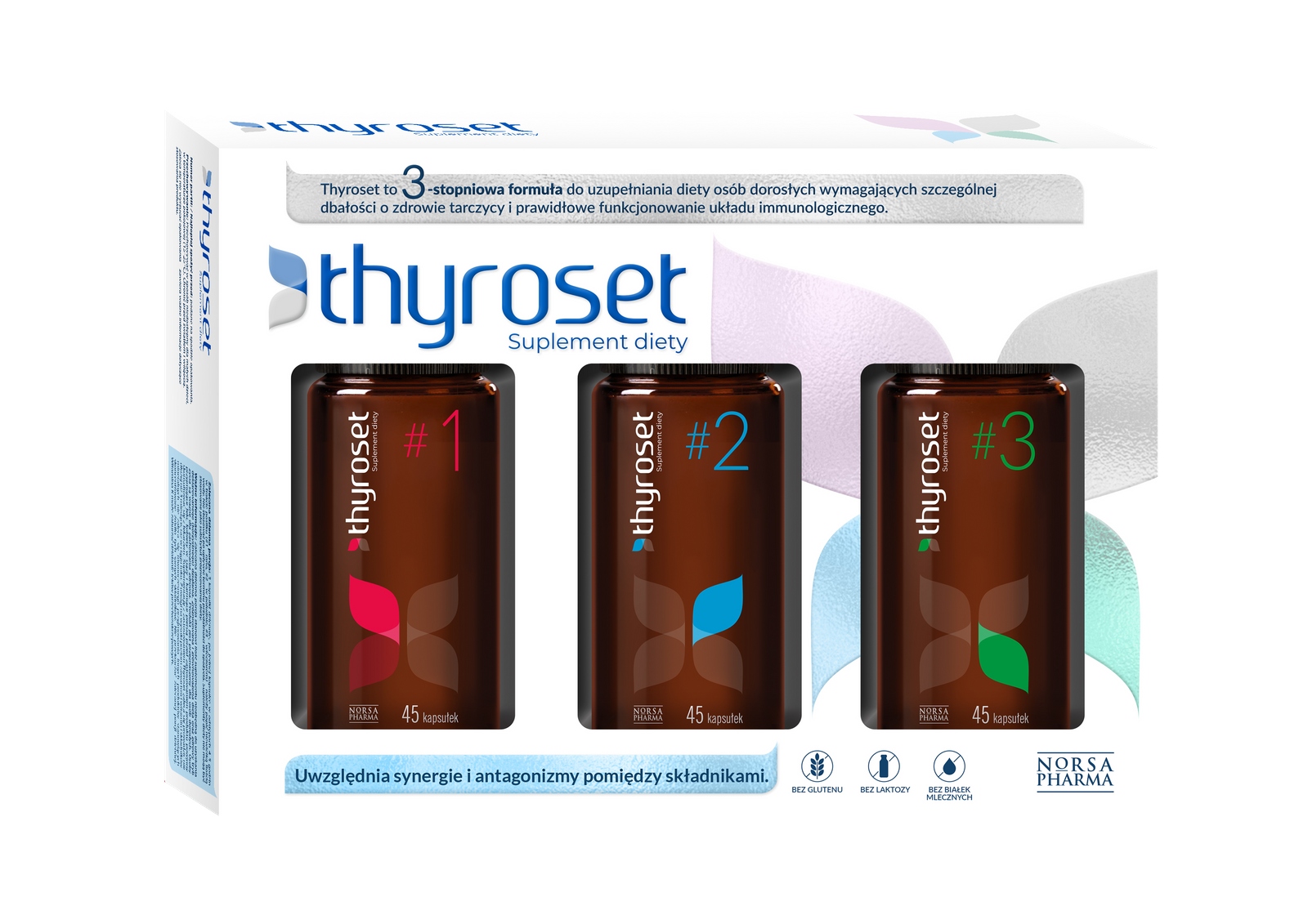 Thyroset Norsa Pharma to zaawansowany suplement diety opracowany z myślą o osobach dbających o zdrowie tarczycy, równowagę hormonalną i odporność. Zestaw zawiera 3 rodzaje kapsułek podzielonych na pory dnia, aby wykorzystać synergie między składnikami i unikać ich wzajemnego osłabiania. To rozwiązanie szczególnie doceniane przez osoby z Hashimoto oraz tych, którzy chcą zadbać o prawidłową pracę tarczycy i codzienną witalność.