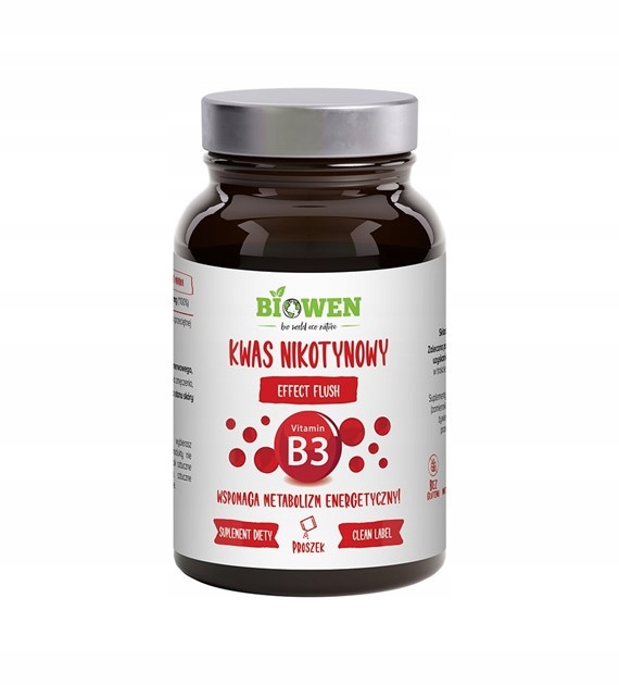Biowen Witamina B3 to suplement diety w formie proszku, zawierający niacynę (kwas nikotynowy). Produkt przeznaczony jest do uzupełniania codziennej diety w witaminę B3. Opakowanie zawiera miarkę ułatwiającą porcjowanie.